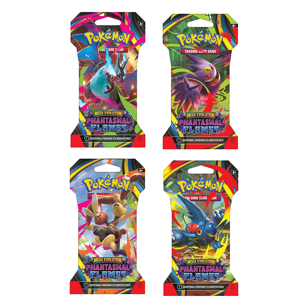 Every booster pack holds 10 cards from the expansion, including the chance to find powerful Mega Evolution Pokémon ex, strategic Trainer cards, and more than 15 special illustration rares. With over 120 cards in the set, plus 10 Trainer cards, this expansion combines fiery aggression and spectral control for dynamic gameplay.