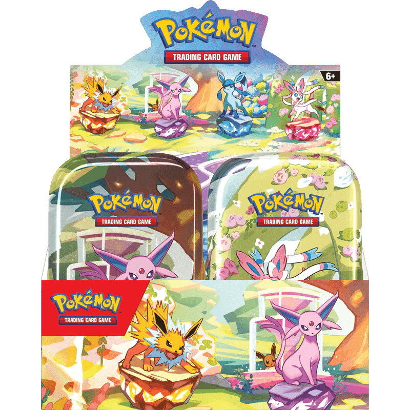 Eevee and its beloved Evolutions light up in vibrant colours with the Prismatic Evolutions Mini Tins! From fiery to frosty and everything in between, these tins capture the unique charm of Eevee’s many forms. This series of eight collectible tins celebrates the beauty and power of Stellar Tera Pokémon ex from the Scarlet & Violet—Prismatic Evolutions expansion, making it an essential addition for both Pokémon enthusiasts and TCG players alike.