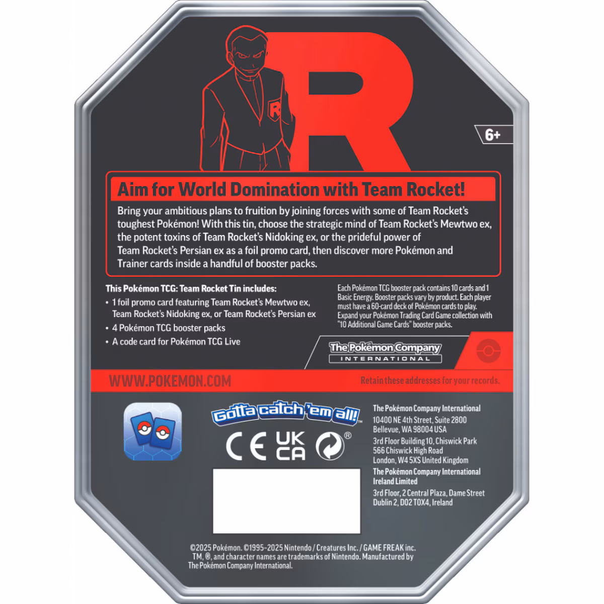 The Pokémon TCG: Team Rocket Tin includes: